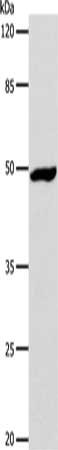 • Gel: 10%SDS-PAGE, Lysate: 30 μg, Lane: Hela cells, Primary antibody: CSB-PA343762(DRD1 Antibody) at dilution 1/1000, Secondary antibody: Goat anti rabbit IgG at 1/8000 dilution, Exposure time: 1 minute