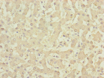 Immunohistochemistry of paraffin-embedded human liver tissue using CSB-PA844722ESR2HU at dilution of 1:100