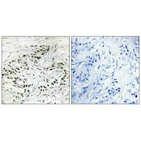 • Immunohistochemistry analysis of paraffin-embedded human breast carcinoma tissue, using ERF antibody.