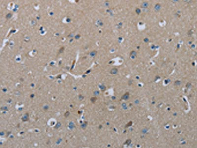 The image on the left is immunohistochemistry of paraffin-embedded Human brain tissue using CSB-PA277783(FAAH Antibody) at dilution 1/50, on the right is treated with fusion protein. (Original magnification: ×200)