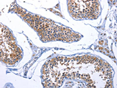 The image on the left is immunohistochemistry of paraffin-embedded Human testis tissue using CSB-PA907350(FABP3 Antibody) at dilution 1/17, on the right is treated with synthetic peptide. (Original magnification: ×200)