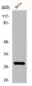 • Western Blot analysis of HeLa cells using FADD Polyclonal Antibody