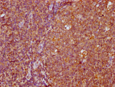 IHC image of CSB-PA008345LA01HU diluted at 1:400 and staining in paraffin-embedded human tonsil tissue performed on a Leica BondTM system. After dewaxing and hydration, antigen retrieval was mediated by high pressure in a citrate buffer (pH 6.0). Section was blocked with 10% normal goat serum 30min at RT. Then primary antibody (1% BSA) was incubated at 4°C overnight. The primary is detected by a biotinylated secondary antibody and visualized using an HRP conjugated SP system.