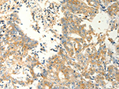 • The image on the left is immunohistochemistry of paraffin-embedded Human gastric cancer tissue using CSB-PA068600(FAT3 Antibody) at dilution 1/30, on the right is treated with synthetic peptide. (Original magnification: ×200)