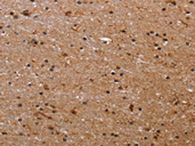 The image on the left is immunohistochemistry of paraffin-embedded Human brain tissue using CSB-PA103410(FBP2 Antibody) at dilution 1/40, on the right is treated with fusion protein. (Original magnification: ×200)