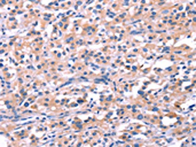 The image on the left is immunohistochemistry of paraffin-embedded Human thyroid cancer tissue using CSB-PA722618(FEM1B Antibody) at dilution 1/20, on the right is treated with synthetic peptide. (Original magnification: ×200)