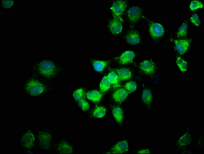 • Immunofluorescence staining of Hela cells with CSB-PA008615ESR2HU at 1:96, counter-stained with DAPI. The cells were fixed in 4% formaldehyde, permeabilized using 0.2% Triton X-100 and blocked in 10% normal Goat Serum. The cells were then incubated with the antibody overnight at 4°C. The secondary antibody was Alexa Fluor 488-congugated AffiniPure Goat Anti-Rabbit IgG(H+L).