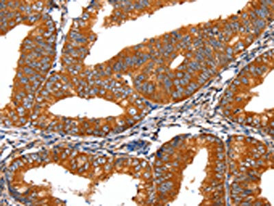 • The image on the left is immunohistochemistry of paraffin-embedded Human cervical cancer tissue using CSB-PA086441(FGFR1 Antibody) at dilution 1/60, on the right is treated with fusion protein. (Original magnification: ×200)
