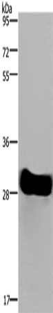 Gel: 8%SDS-PAGE, Lysate: 40 μg, Lane: Mouse heart tissue, Primary antibody: CSB-PA664930(FHL2 Antibody) at dilution 1/1900, Secondary antibody: Goat anti rabbit IgG at 1/8000 dilution, Exposure time: 3 seconds