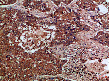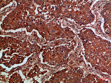 • Immunohistochemical analysis of paraffin-embedded Human-lung-cancer, antibody was diluted at 1:100