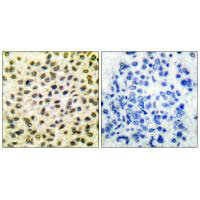 • Immunohistochemical analysis of paraffin-embedded human breast carcinoma tissue using Fos antibody.