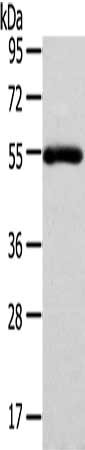 • Gel: 8%SDS-PAGE, Lysate: 40 μg, Lane: Human normal liver tissue, Primary antibody: CSB-PA104252(FOXC1 Antibody) at dilution 1/400 dilution, Secondary antibody: Goat anti rabbit IgG at 1/8000 dilution, Exposure time: 3 minutes