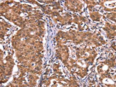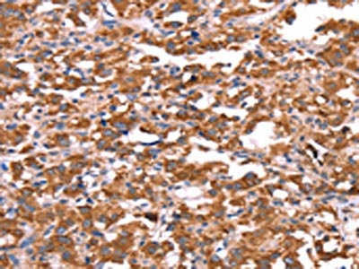 • The image on the left is immunohistochemistry of paraffin-embedded Human gastric cancer tissue using CSB-PA018431(FXR1 Antibody) at dilution 1/20, on the right is treated with synthetic peptide. (Original magnification: ×200)