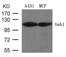 • Western blot analysis of extracts from A431 and MCF cells using Gab1 (Ab-627) Antibody.