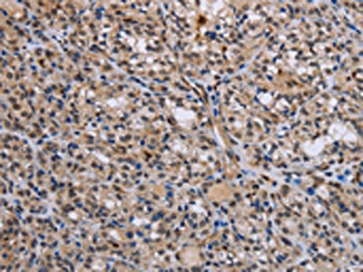 • The image is immunohistochemistry of paraffin-embedded Human thyroid cancer tissue using CSB-PA119536(GADD45A Antibody) at dilution 1/30. (Original magnification: 200)
