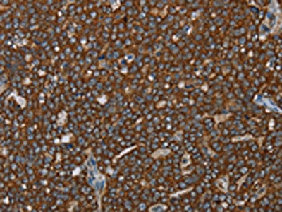 The image on the left is immunohistochemistry of paraffin-embedded Human breast cancer tissue using CSB-PA215070(GCKR Antibody) at dilution 1/40, on the right is treated with fusion protein. (Original magnification: ×200)