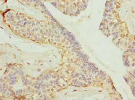 Immunohistochemistry of paraffin-embedded human breast cancer using CSB-PA009338ESR2HU at dilution of 1:100
