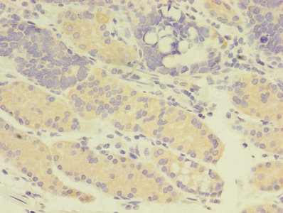 Immunohistochemistry of paraffin-embedded human gastric cancer using CSB-PA009354LA01HU at dilution of 1:100