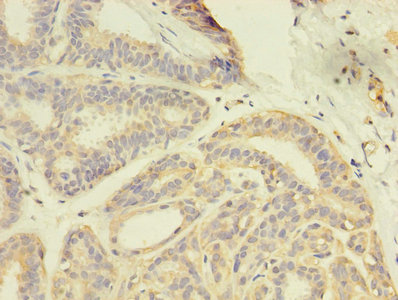 Immunohistochemistry of paraffin-embedded human breast cancer using CSB-PA009354LA01HU at dilution of 1:100