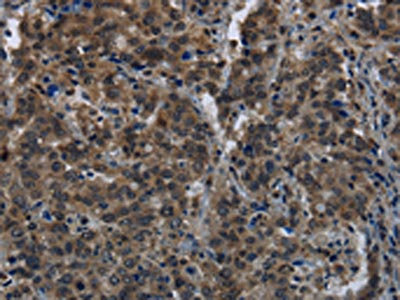 • The image on the left is immunohistochemistry of paraffin-embedded Human liver cancer tissue using CSB-PA209664(GK Antibody) at dilution 1/60, on the right is treated with fusion protein. (Original magnification: ×200)