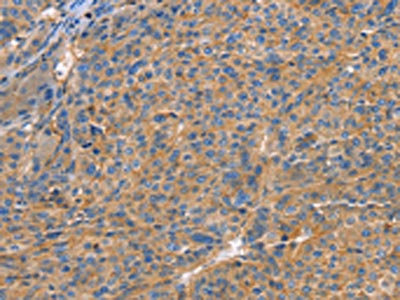 • The image on the left is immunohistochemistry of paraffin-embedded Human liver cancer tissue using CSB-PA897922(GNB1 Antibody) at dilution 1/20, on the right is treated with fusion protein. (Original magnification: ×200)