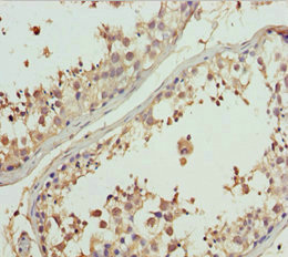 Immunohistochemistry of paraffin-embedded human testis tissue using CSB-PA009639ESR2HU at dilution of 1:100