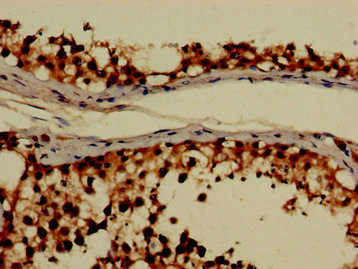 • Immunohistochemistry of paraffin-embedded human testis tissue using CSB-PA009897HA01HU at dilution of 1:100