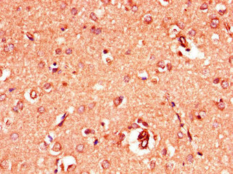 • Immunohistochemistry of paraffin-embedded human brain tissue using CSB-PA009901LA01HU at dilution of 1:100