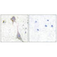 • Immunohistochemical analysis of paraffin-embedded human brain tissue using GluR7 antibody.