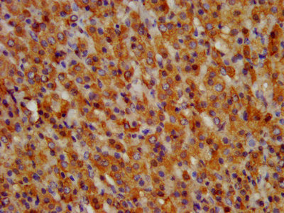• IHC image of CSB-PA009943LA01HU diluted at 1:300 and staining in paraffin-embedded human adrenal gland tissue performed on a Leica BondTM system. After dewaxing and hydration, antigen retrieval was mediated by high pressure in a citrate buffer (pH 6.0). Section was blocked with 10% normal goat serum 30min at RT. Then primary antibody (1% BSA) was incubated at 4°C overnight. The primary is detected by a biotinylated secondary antibody and visualized using an HRP conjugated SP system.