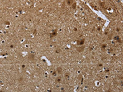 The image on the left is immunohistochemistry of paraffin-embedded Human brain tissue using CSB-PA180065(GYPC Antibody) at dilution 1/60, on the right is treated with fusion protein. (Original magnification: ×200)