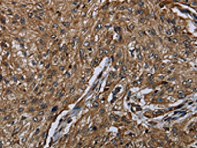 The image on the left is immunohistochemistry of paraffin-embedded Human esophagus cancer tissue using CSB-PA229264(HACL1 Antibody) at dilution 1/20, on the right is treated with fusion protein. (Original magnification: ×200)