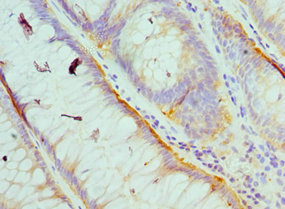 • Immunohistochemistry of paraffin-embedded human colon cancer using CSB-PA010211ESR1HU at dilution of 1:100