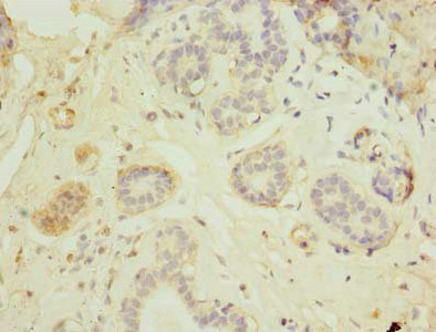Immunohistochemistry of paraffin-embedded human breast cancer using CSB-PA003369LA01HU at dilution of 1:100