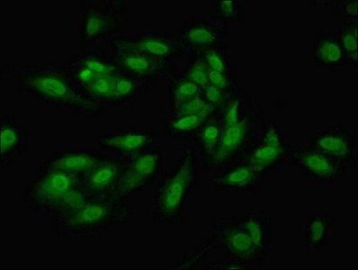 Immunofluorescent analysis of Hela cells using CSB-PA12807A0Rb at dilution of 1:100 and Alexa Fluor 488-congugated AffiniPure Goat Anti-Rabbit IgG(H+L)