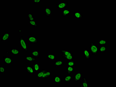 • Immunofluorescent analysis of Hela cells using CSB-PA010389PA101nogHU at dilution of 1:100 and Alexa Fluor 488-congugated AffiniPure Goat Anti-Rabbit IgG(H+L)