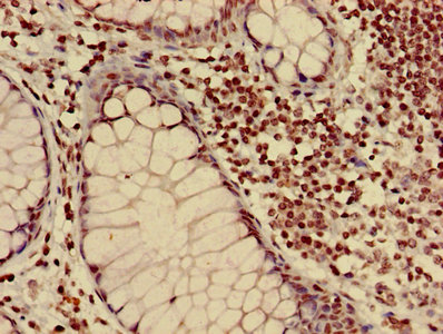 Immunohistochemistry of paraffin-embedded human colon cancer using CSB-PA010418PA17nme1HU at dilution of 1:100