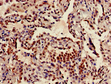 Immunohistochemistry of paraffin-embedded human lung cancer using CSB-PA010418PA18nacHU at dilution of 1:100