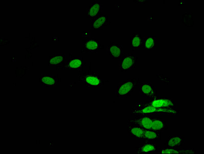 Immunofluorescent analysis of Hela cells using CSB-PA010429PA16nacHU at dilution of 1:100 and Alexa Fluor 488-congugated AffiniPure Goat Anti-Rabbit IgG(H+L)