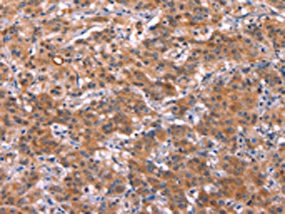 • The image on the left is immunohistochemistry of paraffin-embedded Human gastic cancer tissue using CSB-PA272605(HMGCS1 Antibody) at dilution 1/40, on the right is treated with synthetic peptide. (Original magnification: ×200)