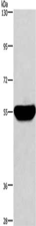 • Gel: 6%SDS-PAGE, Lysate: 40 μg, Lane: Human fetal liver tissue, Primary antibody: CSB-PA272605(HMGCS1 Antibody) at dilution 1/300, Secondary antibody: Goat anti rabbit IgG at 1/8000 dilution, Exposure time: 30 seconds