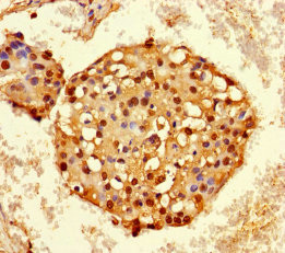 Immunohistochemistry of paraffin-embedded human breast cancer using CSB-PA010602DA01HU at dilution of 1:100