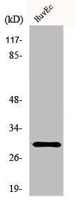 • Western Blot analysis of HuvEc cells using HoxB5 Polyclonal Antibody