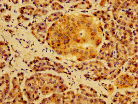 Immunohistochemistry of paraffin-embedded human pancreatic tissue using CSB-PA010746LA01HU at dilution of 1:100