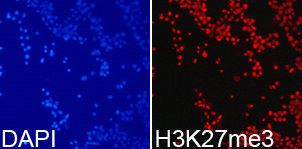 免疫原:A synthetic methylated peptide corresponding to residues surrounding K27 of Human histone H3