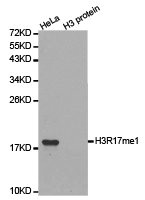 免疫原:A synthetic mono-methylatedpeptide corresponding to residues surrounding Arg17 of Human histone H3