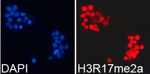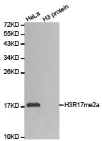 免疫原:A synthetic methylated peptide corresponding to residues surrounding Arg17 of Human histone H3