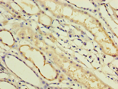 • Immunohistochemistry of paraffin-embedded human kidney tissue using CSB-PA011035EA01HU at dilution of 1:100