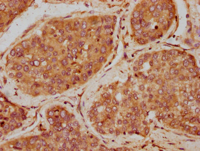 • IHC image of CSB-PA08399A0Rb diluted at 1:400 and staining in paraffin-embedded human liver cancer performed on a Leica BondTM system. After dewaxing and hydration, antigen retrieval was mediated by high pressure in a citrate buffer (pH 6.0). Section was blocked with 10% normal goat serum 30min at RT. Then primary antibody (1% BSA) was incubated at 4°C overnight. The primary is detected by a biotinylated secondary antibody and visualized using an HRP conjugated SP system.