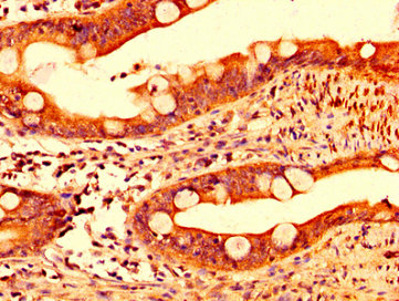 • IHC image of CSB-PA842733LA01HU diluted at 1:500 and staining in paraffin-embedded human small intestine tissue performed on a Leica BondTM system. After dewaxing and hydration, antigen retrieval was mediated by high pressure in a citrate buffer (pH 6.0). Section was blocked with 10% normal goat serum 30min at RT. Then primary antibody (1% BSA) was incubated at 4°C overnight. The primary is detected by a biotinylated secondary antibody and visualized using an HRP conjugated SP system.